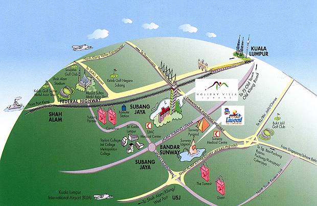 يبعد فندق هوليداي فيلا سوبانج مسافة ساعة واحدة بالسيارة عن مطار كوالالمبور الدولي. كما تقع محطة سوبانغ جايا كي تي ام على بعد 5 دقائق فقط بالسيارة بينما يمكن الوصول إلى منتزه صنواي لاغون الترفيهي ضمن مسافة 5 كم.