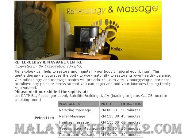 كما يوجد مكان مخصص للمساج في مطار كوالالمبور الدولي في ماليزيا