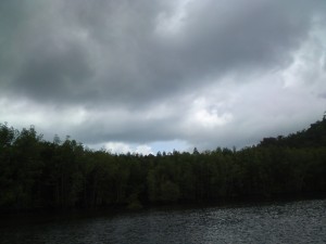 ومن أجمل ما رأيت في رحلة المانقروف هوا تعانق السحاب مع الجبال وهطول الامطار الغزيرة أثناء الرحلة