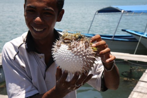 لا تطعم الأسماك الخطرة والسامة في مزرعة الأسماك فقد تتسبب لك بإصابة وخطورة فلا تجازف