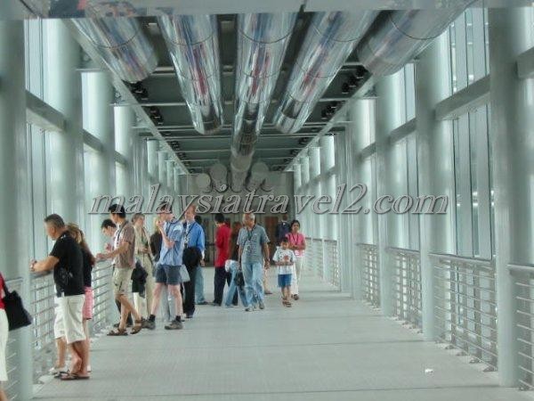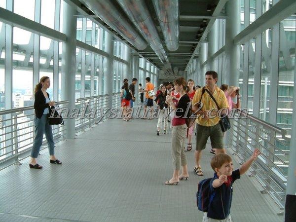 وعلى ارتفاع 170 مترا يربط جسر معلق طوله 58.4 مترا بين البرجين التوأم عند الطابقين 41 و 42.