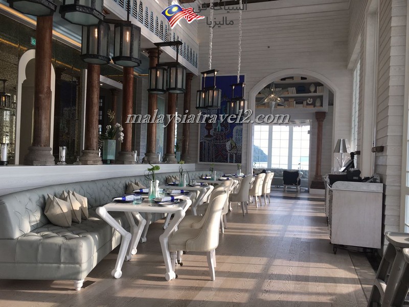 المطعم و يقع على اكواخ فوق الماء بمنظر بديع