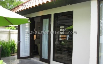 بعد الوصول الى منطقة الفلل في ويستن لنكاوي نجد ان هناك صفين متوازيين من الفلل واللي في الجهه اليمين هي المطله على البحر و اما اللي في اليسار هي المطله على الحديقةو تقريبا هي متشابهه في التصميم و الاثاث